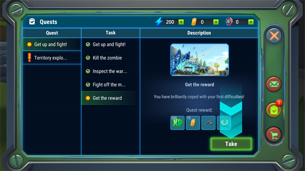 6.在任务栏可以查看当前的任务,完成任务会获得各种奖励。