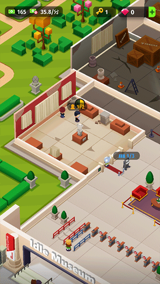 4、收入循环投资:将门票收益用于雇佣员工、翻新展馆、解锁新展区,形成良性经营循环。