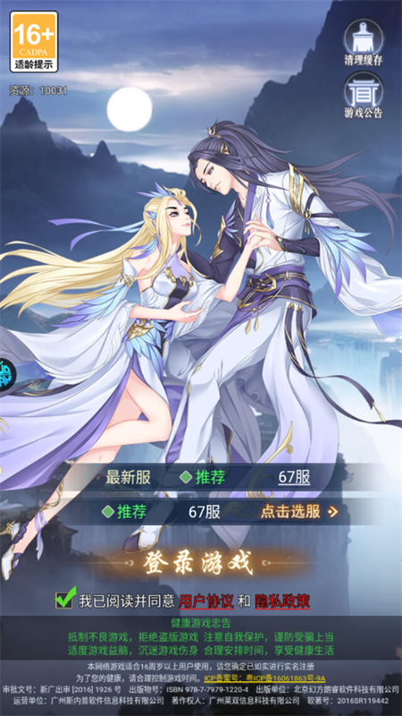 1、选择适配区服,同意相关协议后,即可开启修仙之旅;