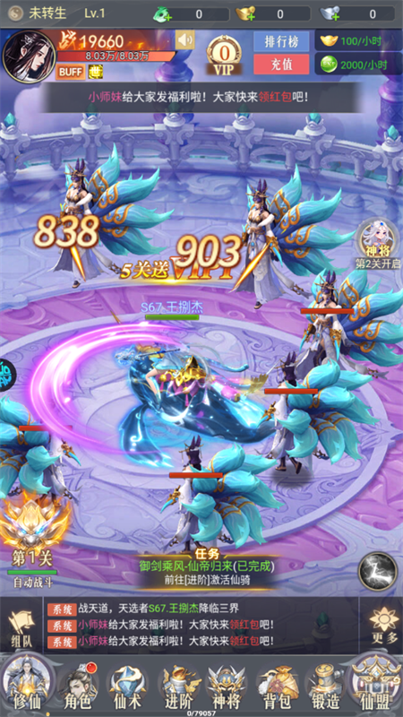 4、任务全自动接取,支持自由挂机战斗,解放双手;