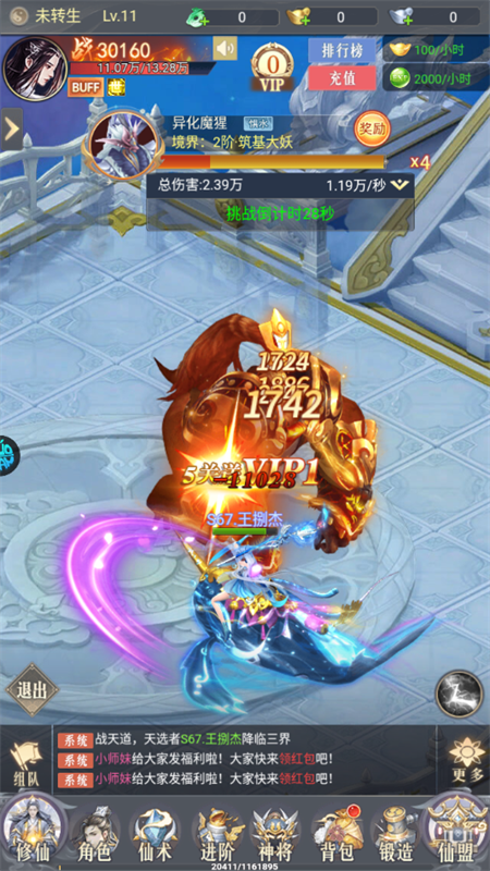 2、海量BOSS可供挑战,组队激战畅享热血战斗快感;