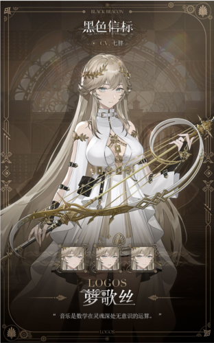 萝歌丝,德尔菲哲学院学生,德尔菲学会学员长,神谕隐所近一百年来最年轻的成员,品学兼优,因其禀赋而被学会寄予厚望,其名字源自古老的语言,蕴含“话语、规律、哲学、道理”之意。