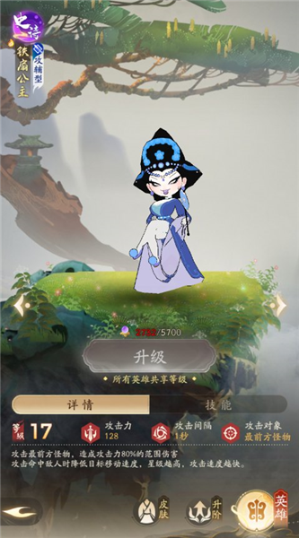 思路:此副本小怪不会攻击基地,但具有多怪免伤机制,难点是过关条件是打够足够数量的金鲲,而金鲲在怪海的后面游荡,所以我们注重攻击后排也就是群伤,而五个英雄算上白骨变成的技能,也就是五个群伤技能,可以有些清理怪海和后面的金鲲。