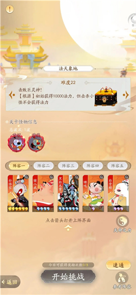 思路:阵容与法相天地阵容相差不大可以继续用上面的阵容,唯一不同的是此副本并没有法力值限制,所以小倩可以换成其他群伤英雄如 小白龙 哪吒等,以解决伤害不够清不掉怪海,同时白骨精的技能回复很快可以有效的打出更多伤害。