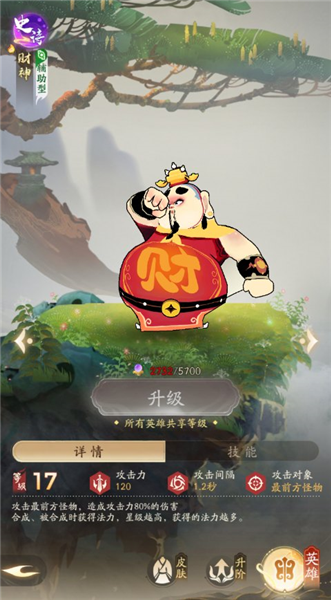 财神,也是不可或缺的好伙伴,在部分正常关卡可以通过财神获取更多资源从而提高输出上限,但是极其容易卡一个高星财神,所以推荐程度四颗星。