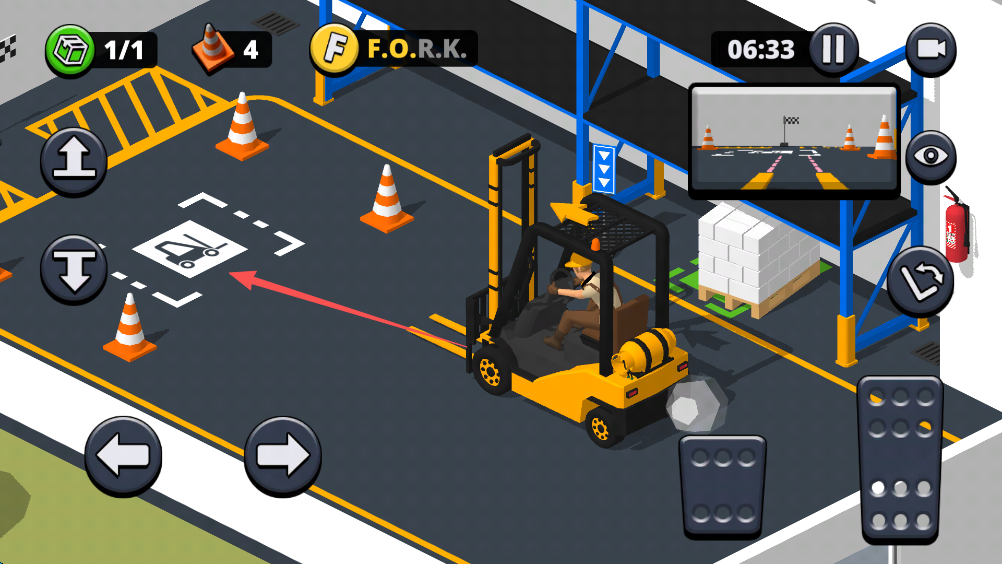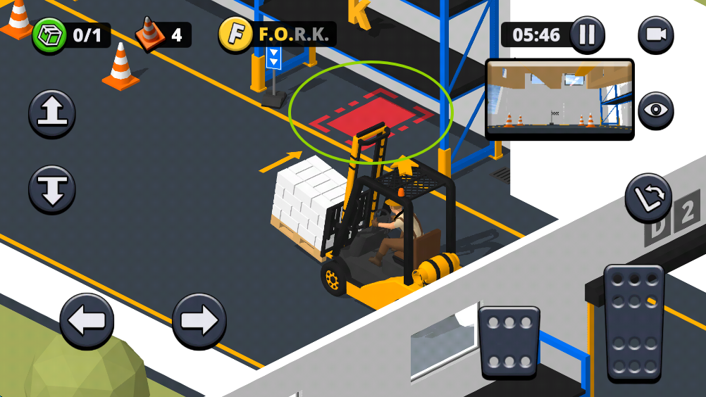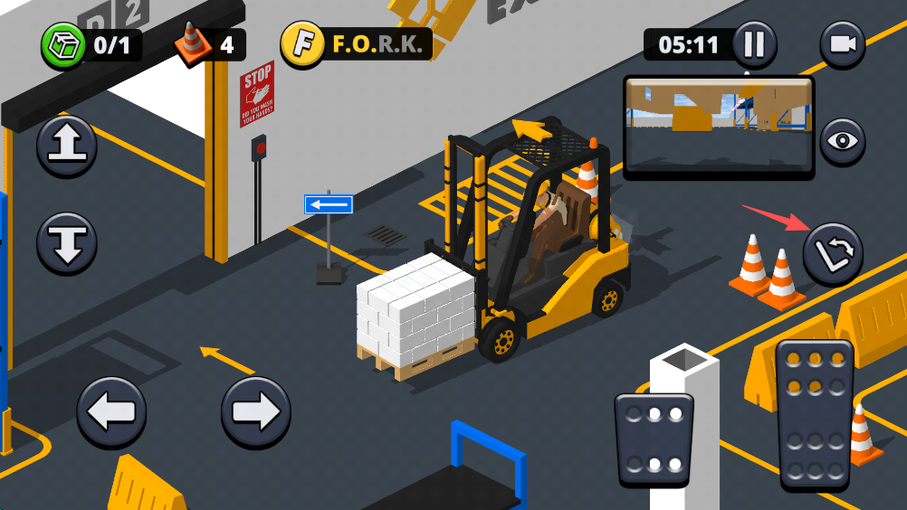 3、放置完成后,我们仍然需要将叉车停放到特定区域,当停放后,就会关卡结算。