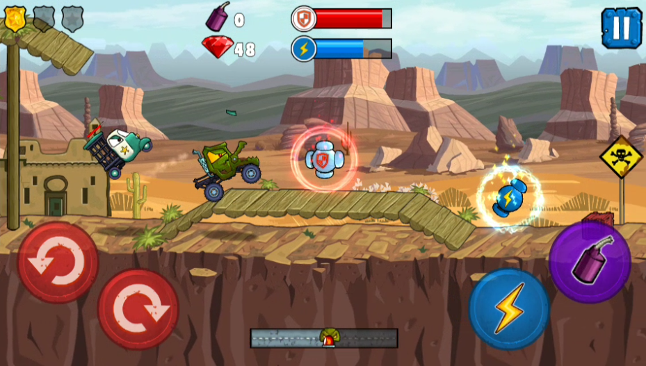 3、路上有很多各种各样的道具,钻石,收集更多的钻石,破坏其他车辆,闯完全程。