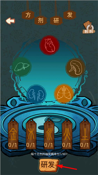 5、进入方剂研发页面,玩家点击研发即可获得新的方剂。