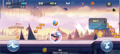 3、进入到游戏之后,有两个按键,分别是滑铲和跳跃的按键,他们都是都是用来躲避游戏中的障碍和拾取金币使用,我们需要尽量跑的更远,获得更高的分数;