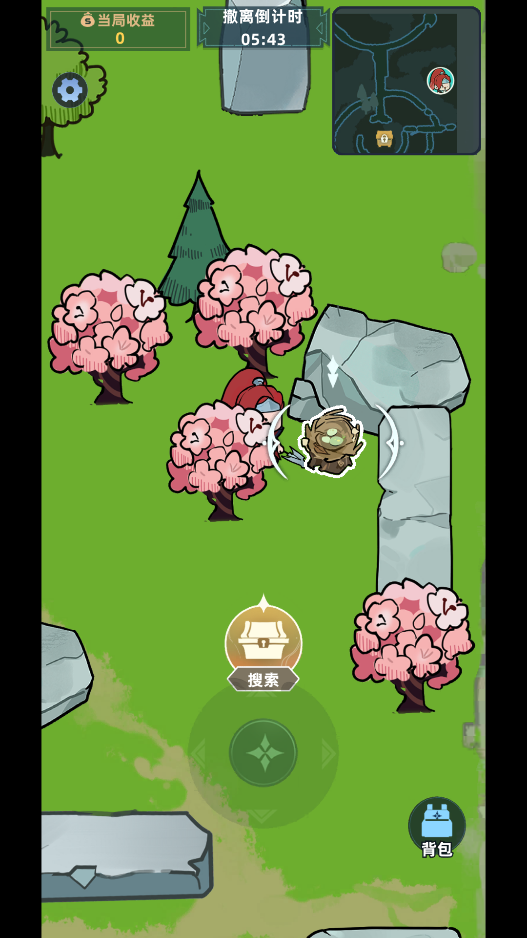 玩家操控英雄在竖版峡谷中移动,主动开启宝箱、翻找角落获取装备与道具,需合理分配背包空间以最大化收益。