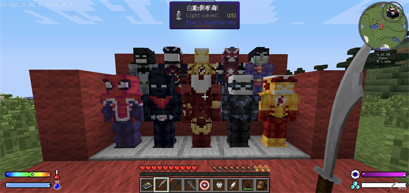 我的世界超级英雄整合包版是一款超级好玩的冒险生存游戏,还原了原版的沙盒像素玩法,让玩家能选择多位不同的超级英雄角色进行体验,还要在游戏中开启冒险旅程,通过收集各类材料制作专属装备,带领自己的超级英雄与各种敌人展开对战,把它们击败,喜欢的朋友快来下载吧!