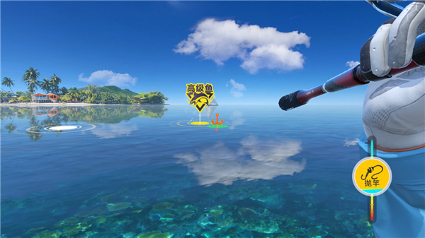 2、长按抛竿并下拉可抛的更远,等待钓位在鱼区即可松手;