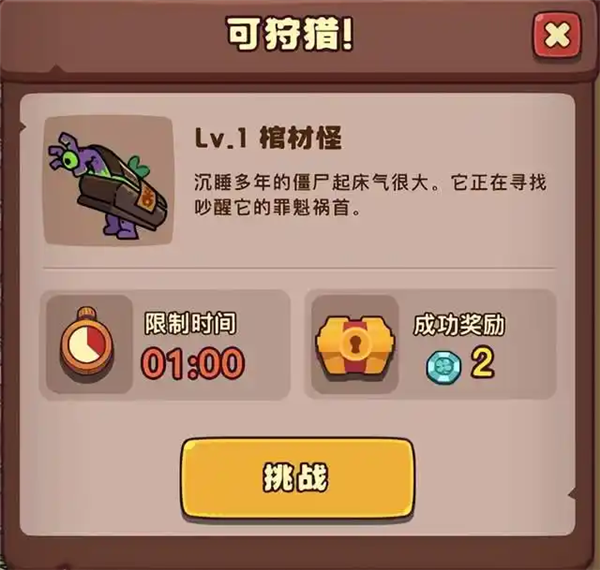 局内对战进行到第六波时,屏幕右上角会出现一个提示,告诉你可以立刻挑战狩猎BOSS,需要在限定时间内击败。成功完成这个挑战就能拿到幸运币啦!
