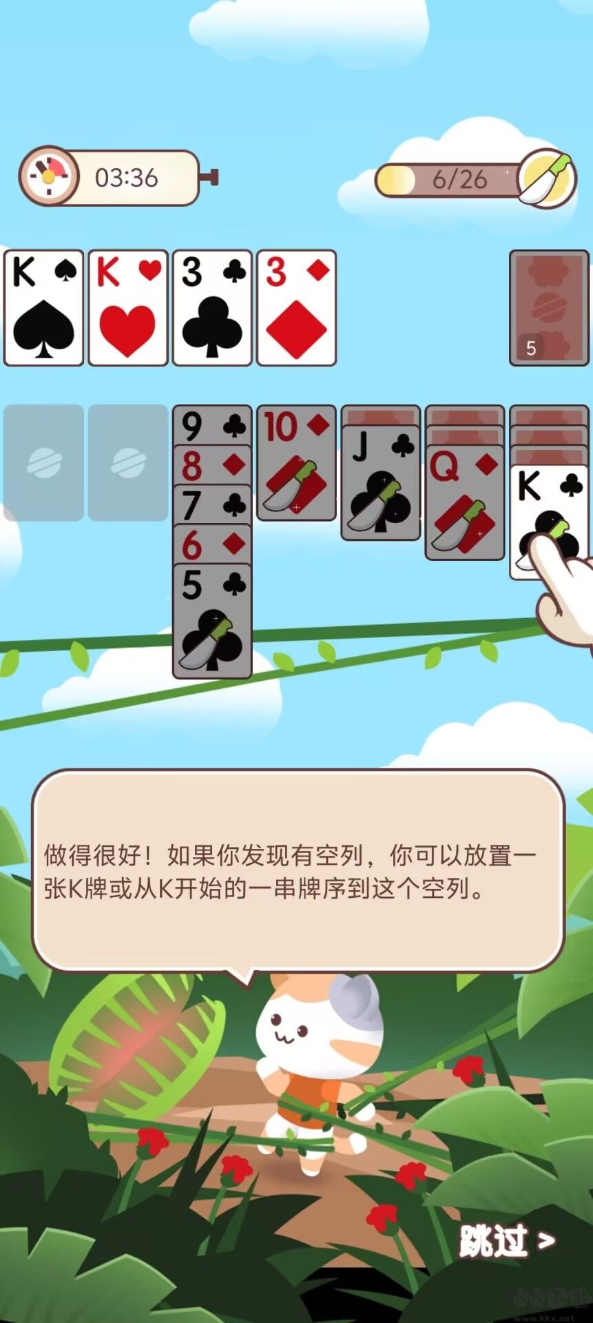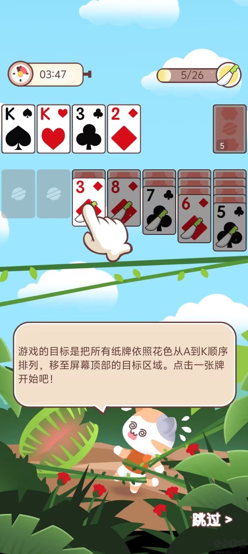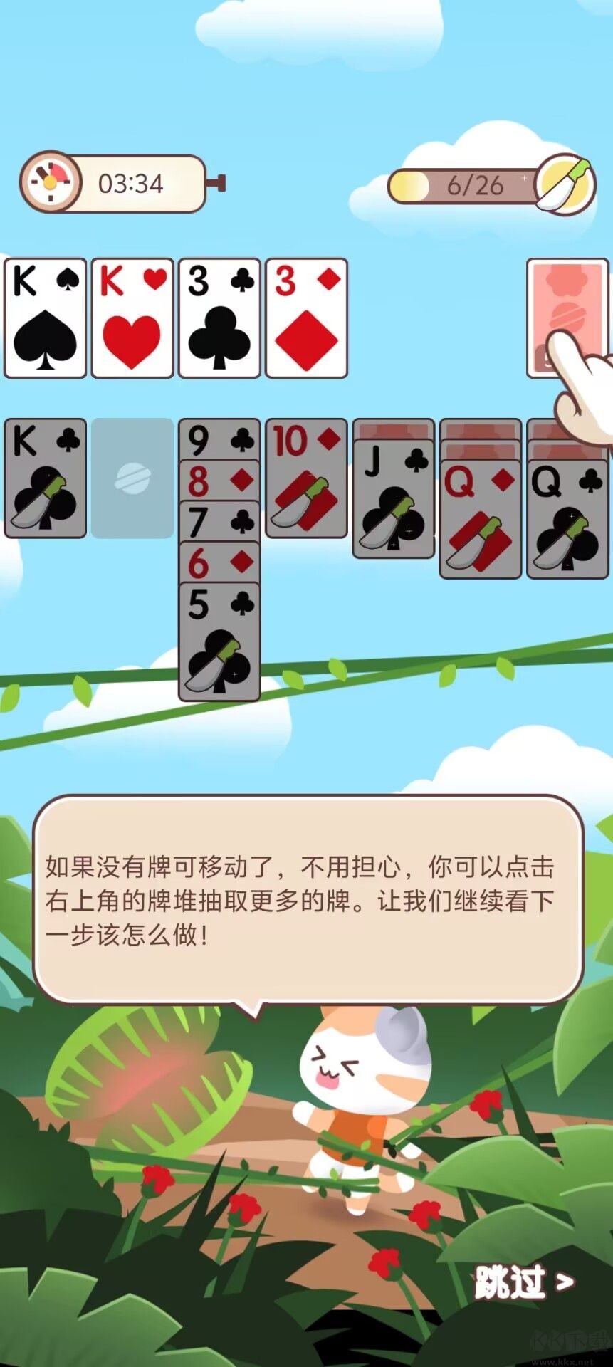 Kitty Solitaire(猫咪纸牌)是一款纸牌接龙手游,加入了温馨治愈的画风与轻松愉快的互动体验,让玩家在挑战策略与规划能力的同时,享受放松心情的乐趣,操作简单易上手,适合全年龄段玩家在碎片时间中进行娱乐。