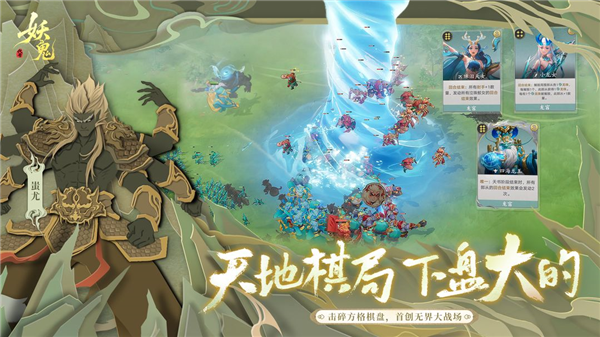 击碎传统棋盘束缚,开启无界战场的宏大对弈!在这里你可自由运营,战斗与纵横皆无定势;落子如布阵,千般诡道将随妖鬼战局逐一显化,如何凭借流派特色机制傲立论场,正静待使君的绝世谋略。