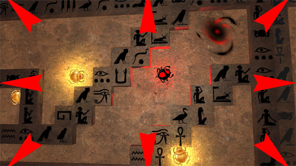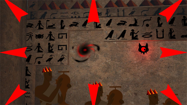 3.通过持续躲避落石、激光、移动障碍等不同类型的危险,逐步探索并寻找通往通关的正确出口,同时保持角色的灵活走位,不断向关卡终点推进,最终成功逃离壁画构筑的封闭区域。