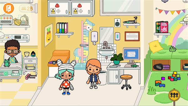 2、 可爱卡通画风:采用明亮色彩和Q萌人物设计,营造轻松愉快的游戏氛围,消除对医院的恐惧。