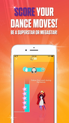 从超过500首曲目的目录中选择一首歌曲,右手拿着智能手机,跟随屏幕上的蔻驰!你的动作会被游戏跟踪和评分,所以完善那些动作,获得满分!