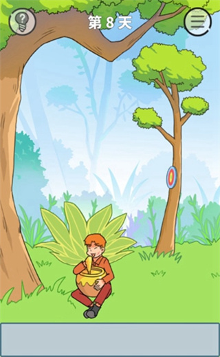 我们把旁边的绳子解开得到鸟,把鸟扔进蜂窝里,这个蜂窝就会掉下来砸到人扮演的大灰熊头上,然后我们就可以独自享受蜂蜜了。