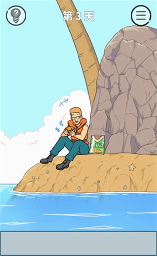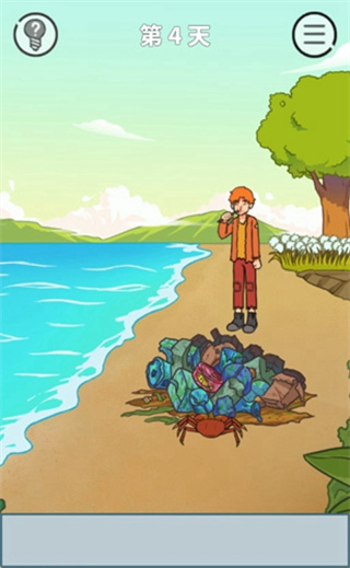 这一关其实如果我们想要填饱肚子,完全不需要过岸,我们点击旁边的蛋,可以看到里面还有一个打火机,用打火机把鸟巢点燃,把蛋放进去,然后我们就能饱餐一顿了。