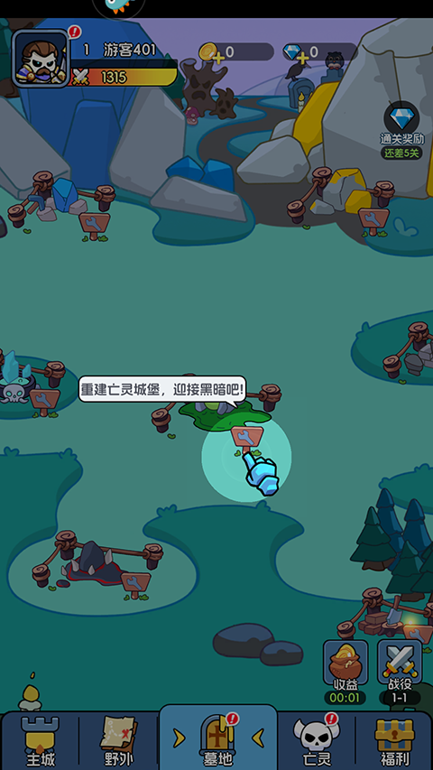 1、进入游戏界面后,先完成亡灵城堡的搭建,筑牢基础发展根基。