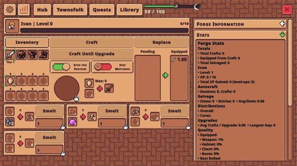 5、点击界面上方的Townsfolk,可制作各类武器装备,制作过程会消耗多种材料。