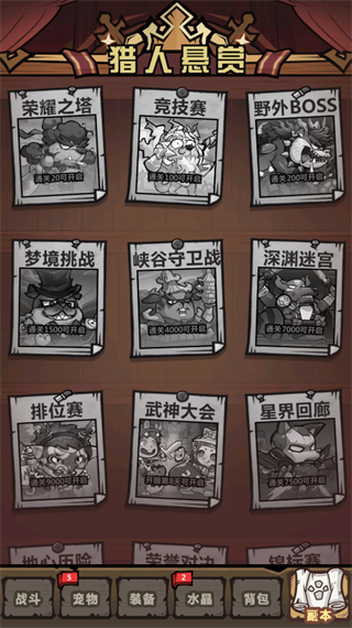 包含多种挑战玩法,如荣耀之塔、竞技场等,是获取资源和提升排名的重要场所。