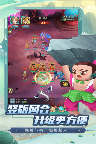 动画经典妖怪悉数登场,蛤蟆精、蜈蚣精、蝎子大王、蛇精均可收服归营。给予它们改过自新的机会,可派遣看守仙洞、守护资源,组建阵容与其他妖怪对战,比拼实力决出最强阵营。