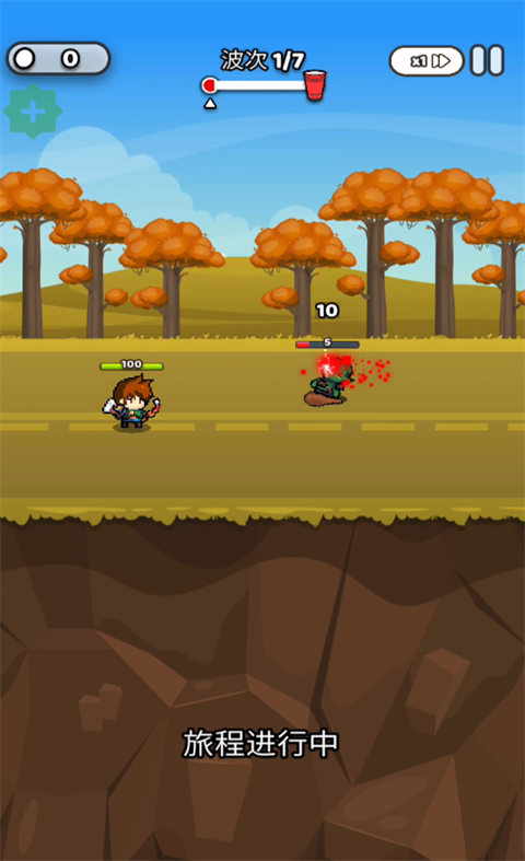 2、战斗系统:角色自动攻击出现的敌人,击败敌人后获得小球作为经验值替代物。