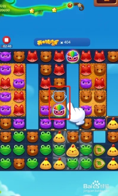 将三个及以上相同颜色的小动物连成一条直线即可消除。达到通关要求之后剩余步数会随机形成特效获得大量额外积分。