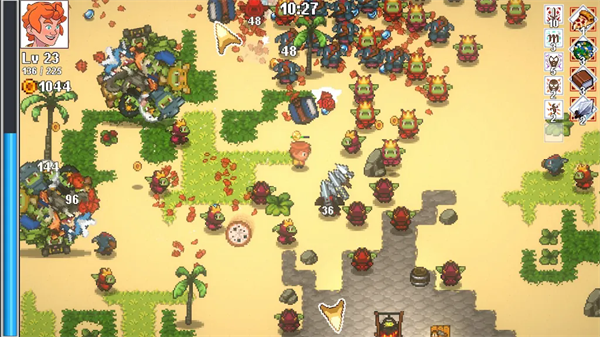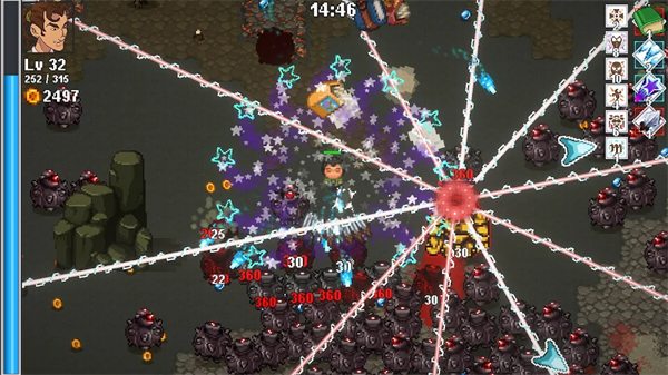 1、玩家的游戏循环围绕生存、收集经验和升级展开。每次游戏,玩家都需要面对越来越强大的敌人,获取经验球并进行合理的升级选择。