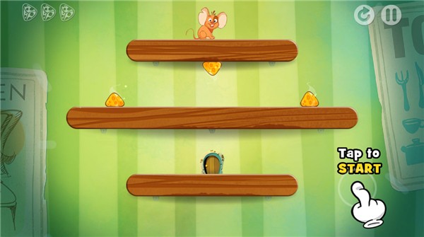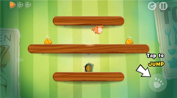 2、 平台跳跃:玩家通过点击屏幕让小老鼠在上下平行的平台之间跳跃,这是唯一的控制方式。