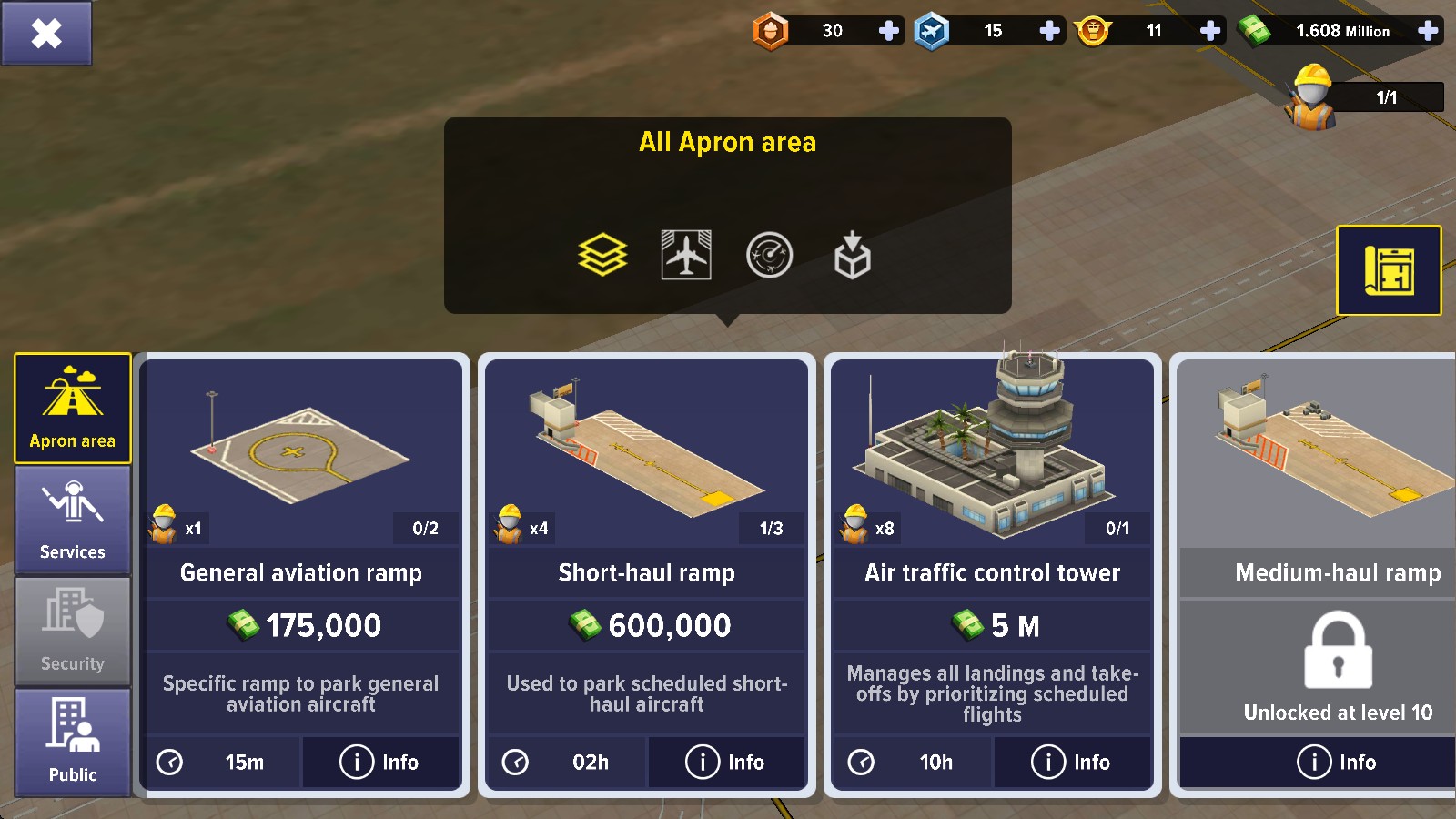 1、 机场规划建设:玩家需要合理规划机场布局,包括跑道、停机坪、航站楼等基础设施的建设。