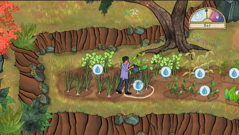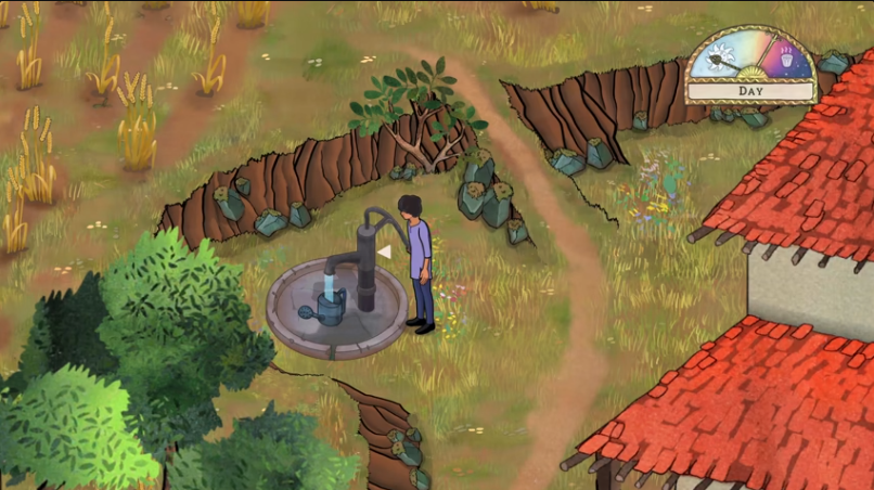1、需要在固定的时间的段来给植物浇水,在房屋的后面可以发现井水。