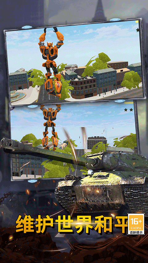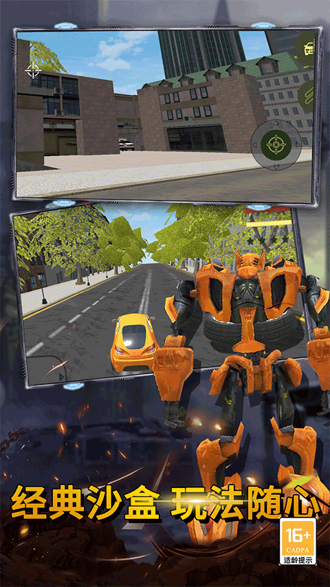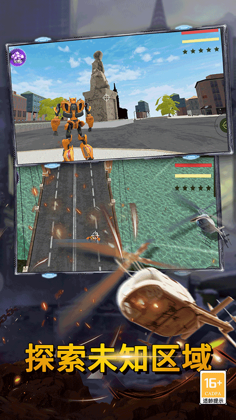 3、玩家扮演一位机甲人,可以在机器人和豪车形态之间切换;