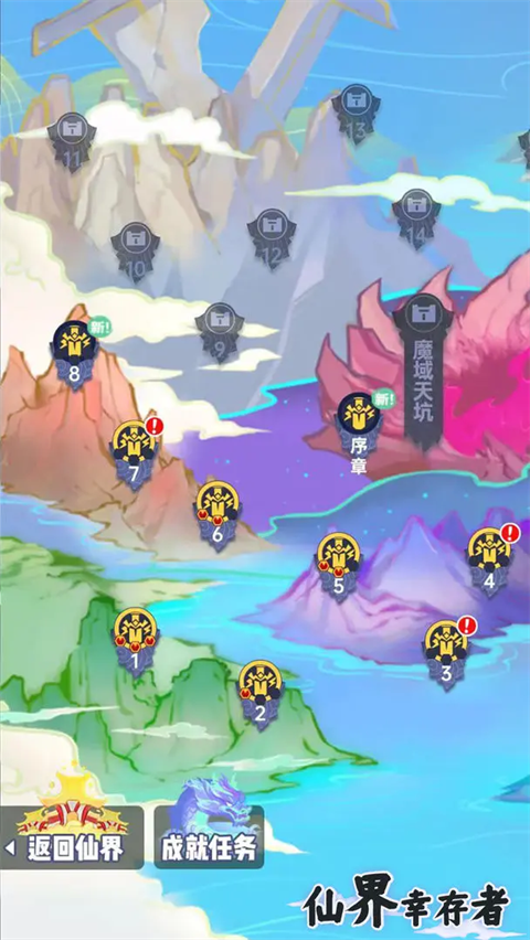 1、游戏开始,选择关卡,随着等级和境界的提升可以解锁更多的关卡。