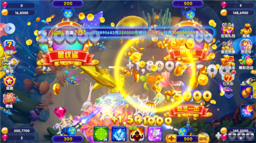 3、释放出奖金鱼后,要集中火力捕条奖金鱼,不要三心二意的漫无目的地攻击,一是浪费火力和金币,二是奖金鱼也随时可能溜走,到时候会赔了夫人又折兵,得不偿失了。