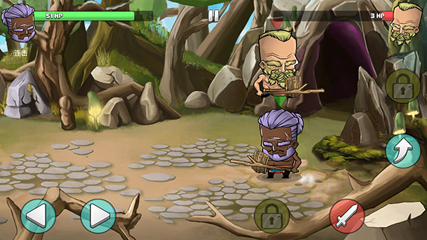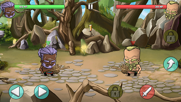 6、进入对战界面,我们可以通过左下方的按钮控制角色移动,右边为攻击和跳跃按钮,