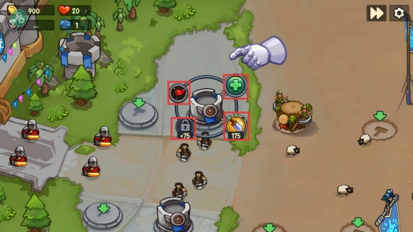 2、留意防御塔附近的功能标识,点击对应的按钮,就能升级或解锁塔的各项能力,让防御变得更稳固哦。