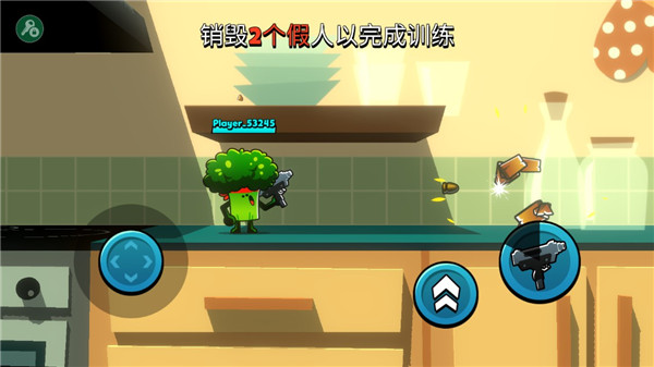 1、进入游戏之后可以看到我们这里有移动方向和跳跃射击。