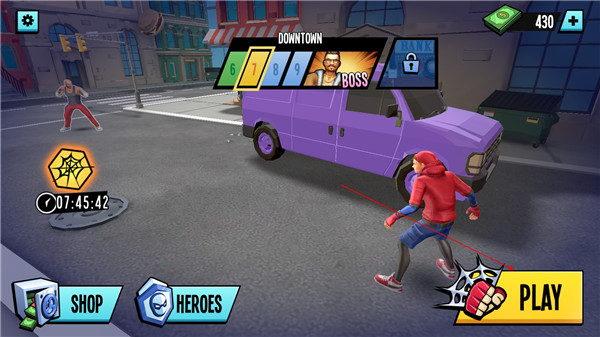 5、 角色升级:解锁新能力和装备,打造个性化的超级英雄形象。