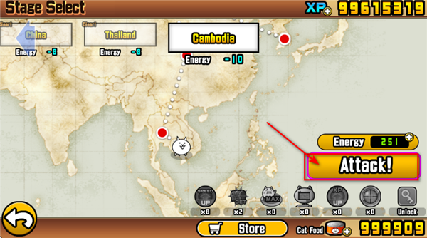 3、 角色养成:通过战斗获得经验值升级猫咪,达到10级后可转职,获得更强的战斗能力。