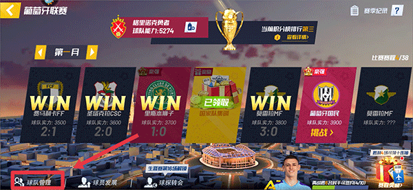 3、在联赛界面中,点击左下角球队管理,