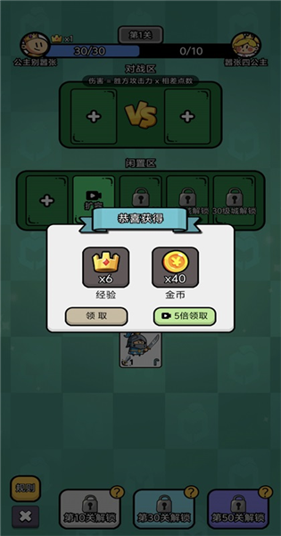 6.战斗胜利后我们就可以获得奖励,点击免广告获得5倍的奖励。