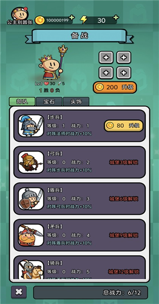 3、包含丰富的士兵解锁系统,涵盖步兵、弓兵、盾兵等多种不同类型的士兵单位,每种士兵拥有独特的外观设计,具备专属的技能机制和属性差异——步兵血厚抗打适合前排承伤,弓兵远程输出擅长消耗敌方,盾兵可开启防御屏障保护队友,不同士兵的搭配组合能衍生出多样战术,大大增加了游戏的策略性和可玩性,解锁越多,玩法越丰富。
