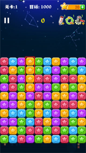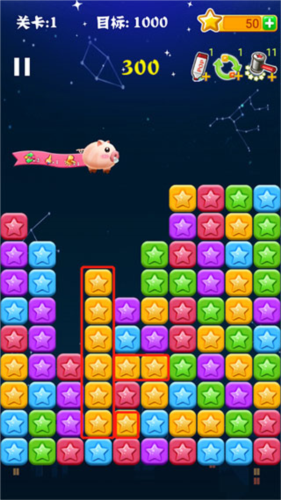 2、如图所示只要是颜色一样的星星连在一起我们就可以点击消除。