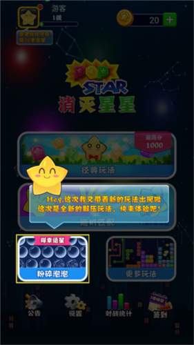6、消灭星星全新版还提供了粉碎泡泡等多种游戏玩法可供选择。