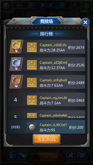 游戏内设有世界排名的竞技战场,游戏内的玩家可以互相发起战斗邀请,同意后双方就可以正式进入对拼界面。