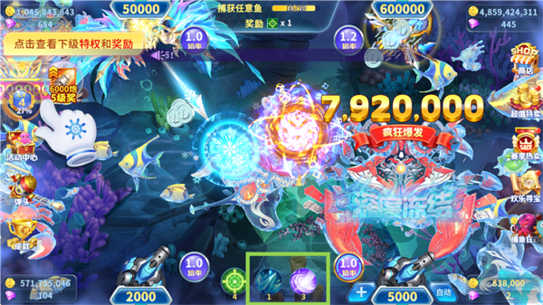 3.丰厚奖励,乐在其中:海量福利免费放送,升级、完成任务即可领取,让捕鱼过程更加畅快过瘾。