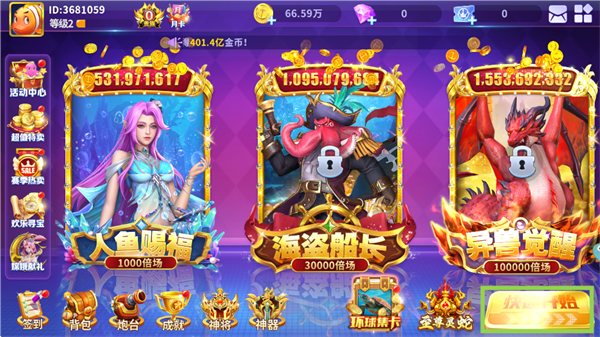 2.经典重现,全新挑战:传承街机捕鱼经典玩法,融合创新趣味元素,每一次开炮都充满惊喜与期待。